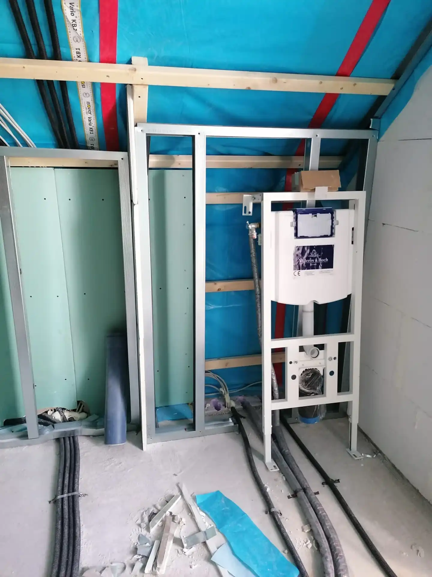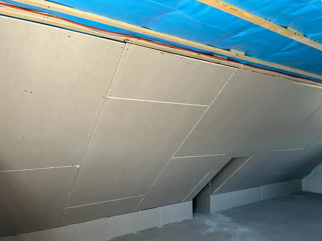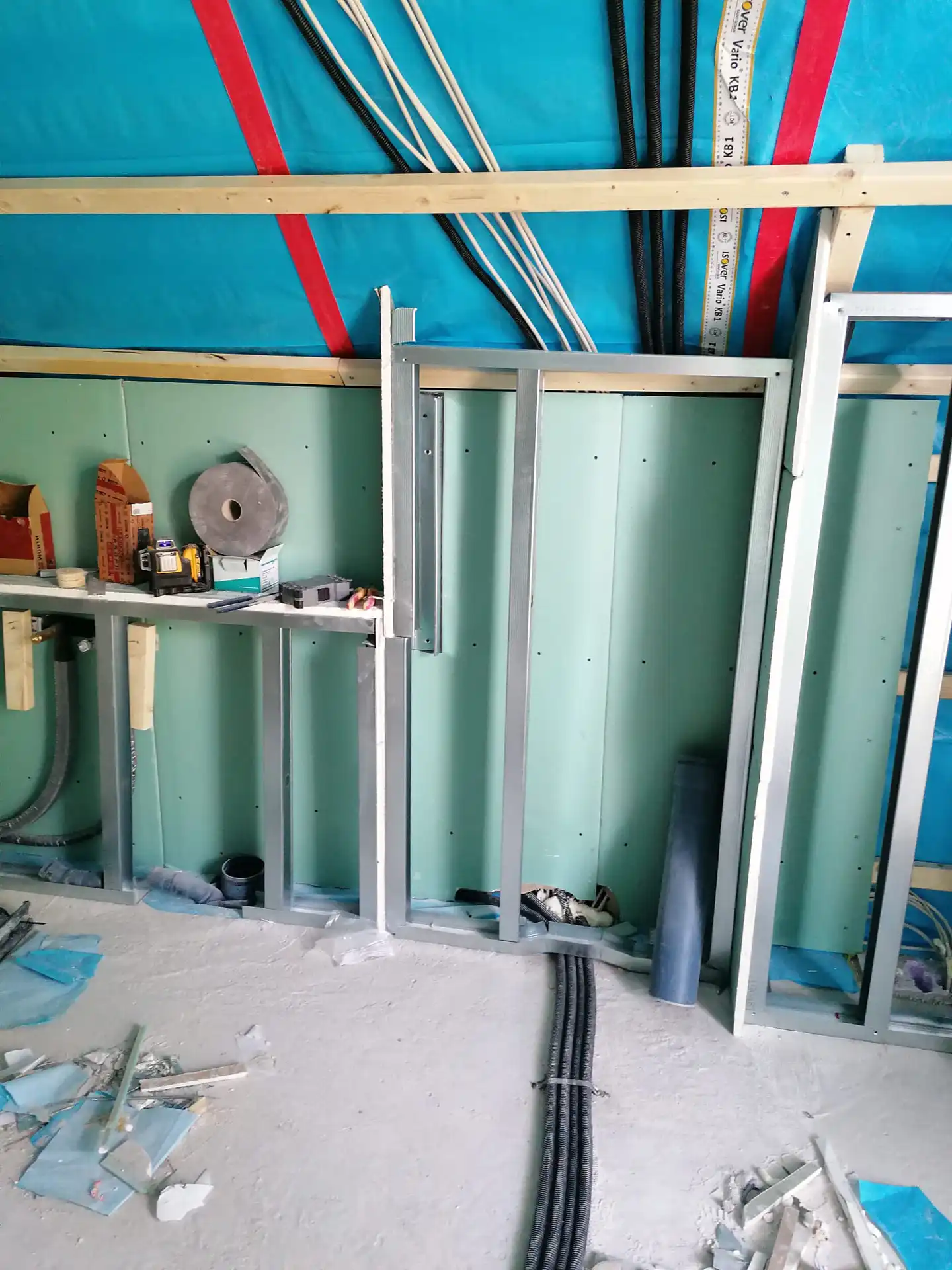 Durch großzügige Fensterfronten und maßgefertigte Trockenbaulösungen entstanden lichtdurchflutete Wohnbereiche. Dämmungen und hochwertige Oberflächen sorgen für optimale Energieeffizienz und ein angenehmes Raumklima.