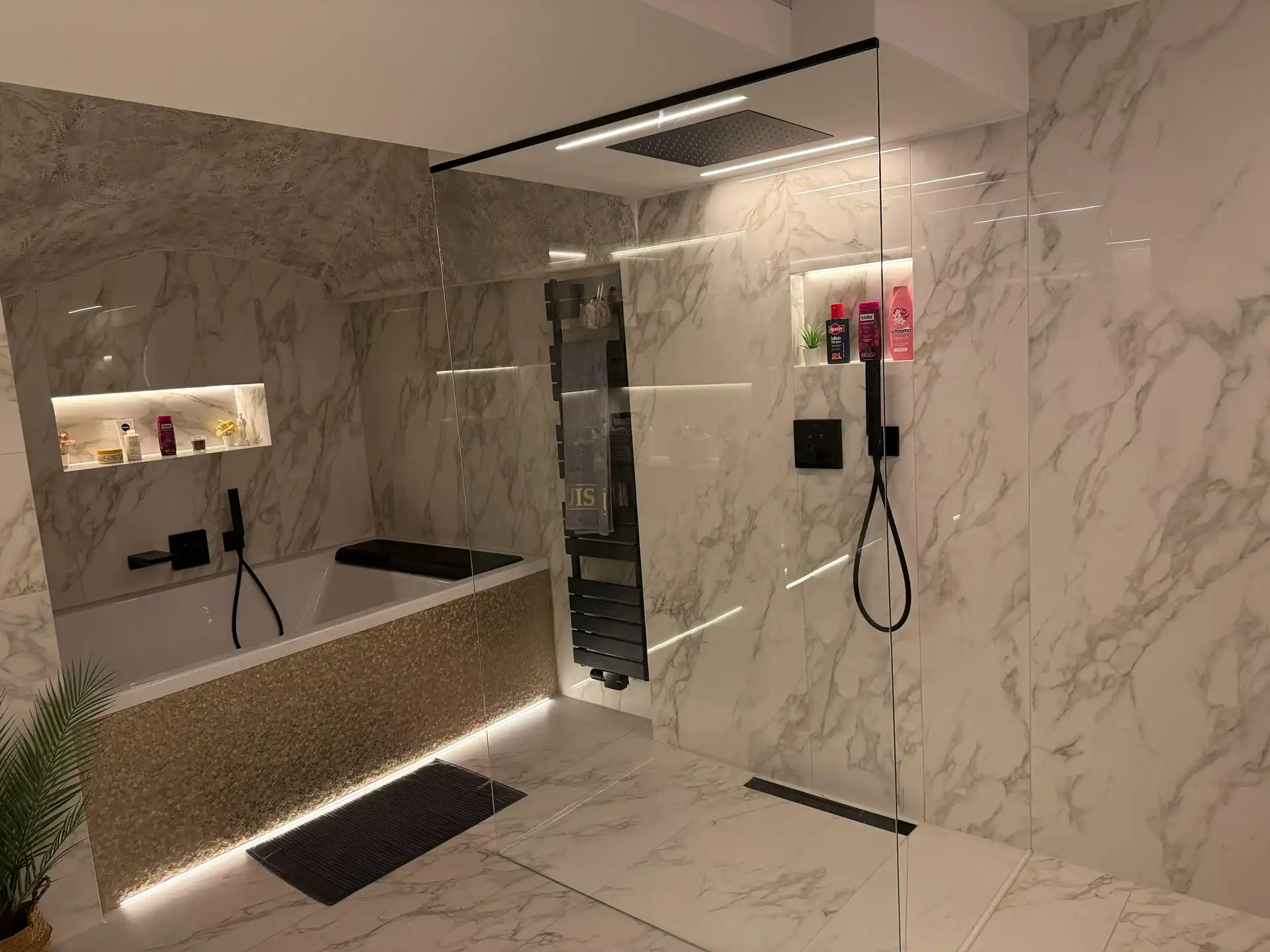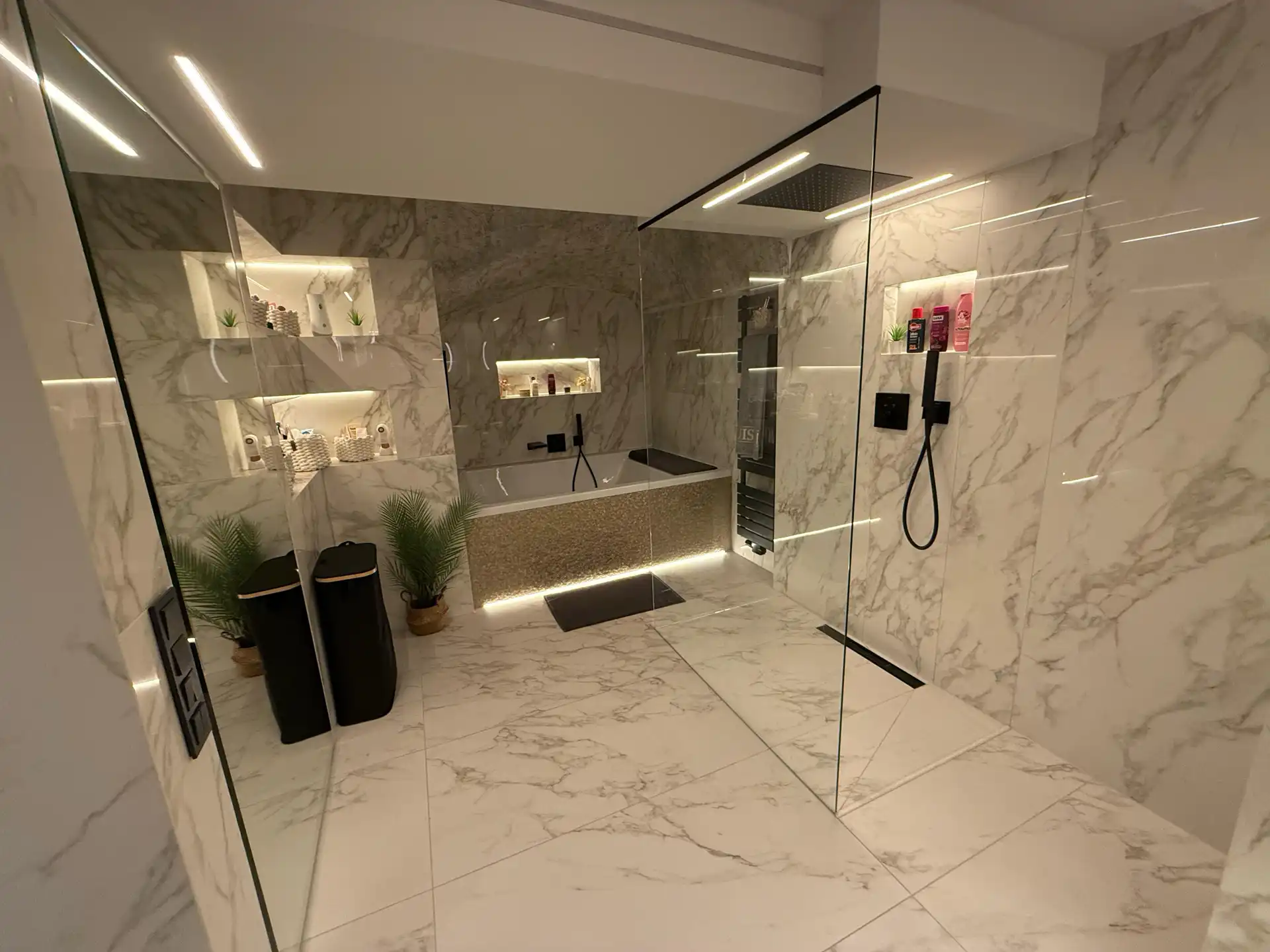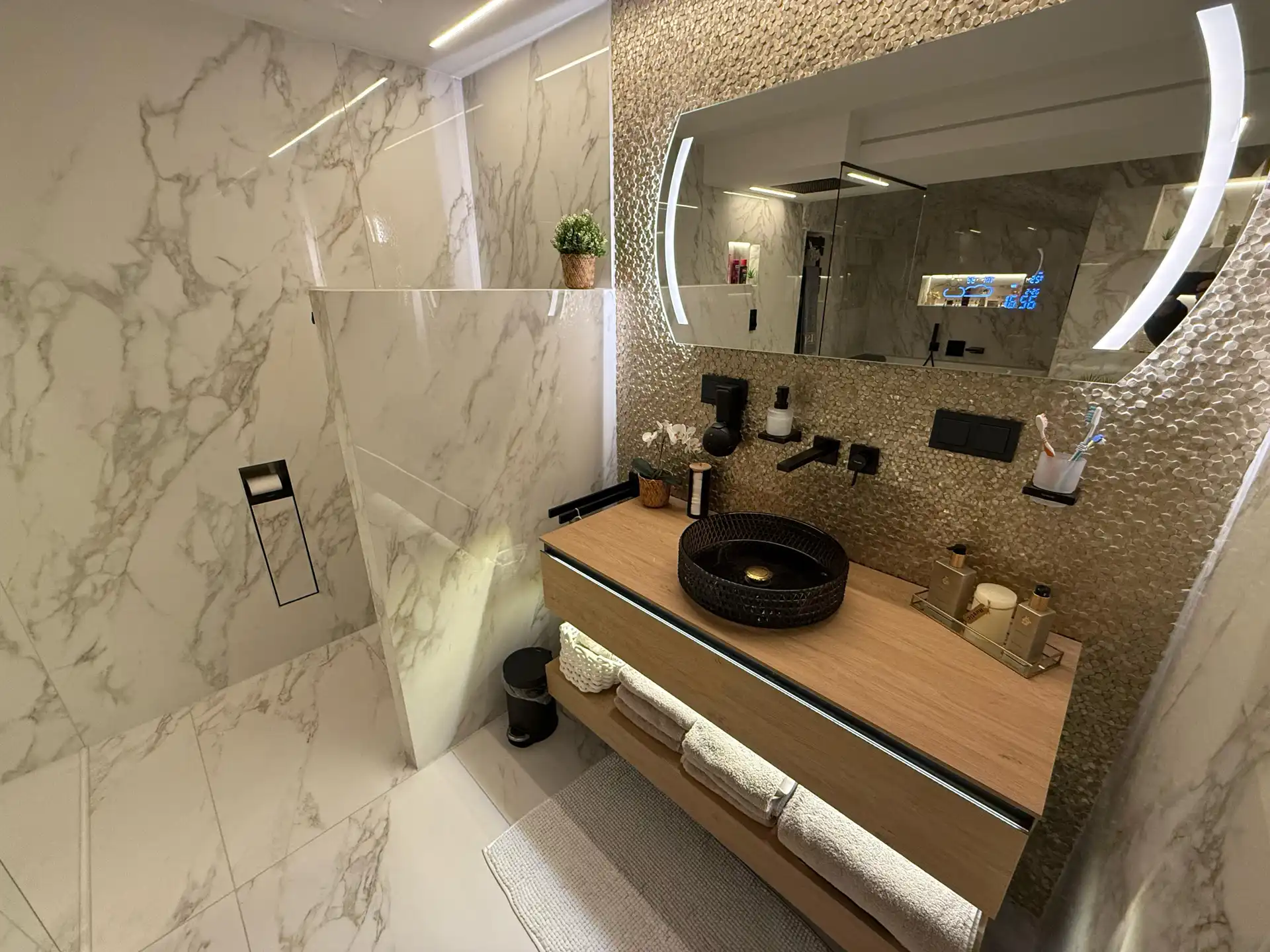 Durch moderne Trockenbautechnik und Dämmung wurde die Wohnqualität massiv gesteigert. Neue Elektro- und Sanitäranlagen sowie hochwertige Materialien runden die Kernsanierung ab.