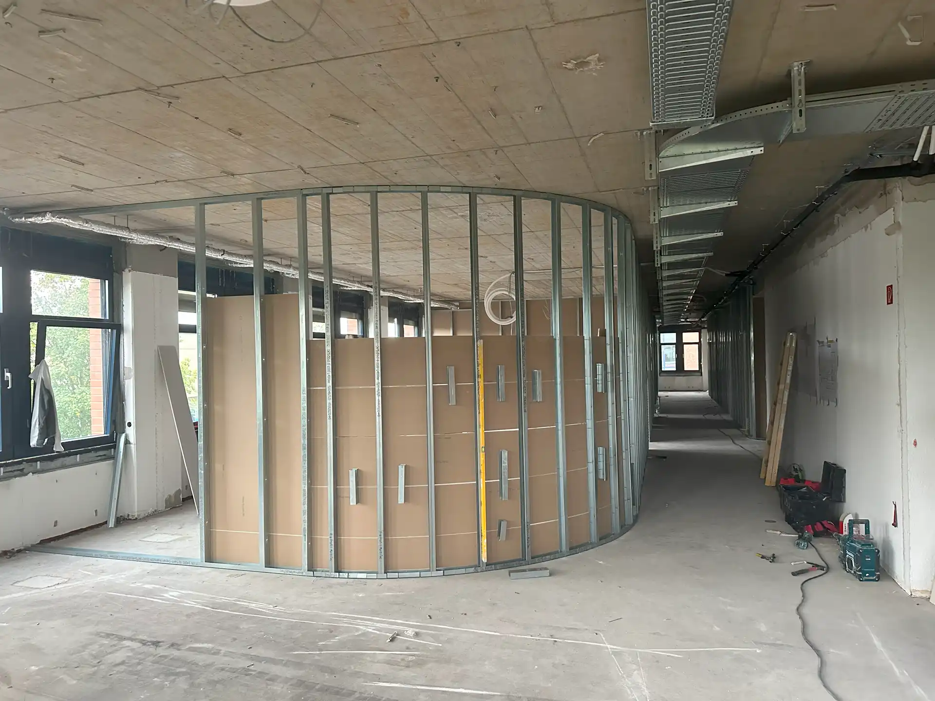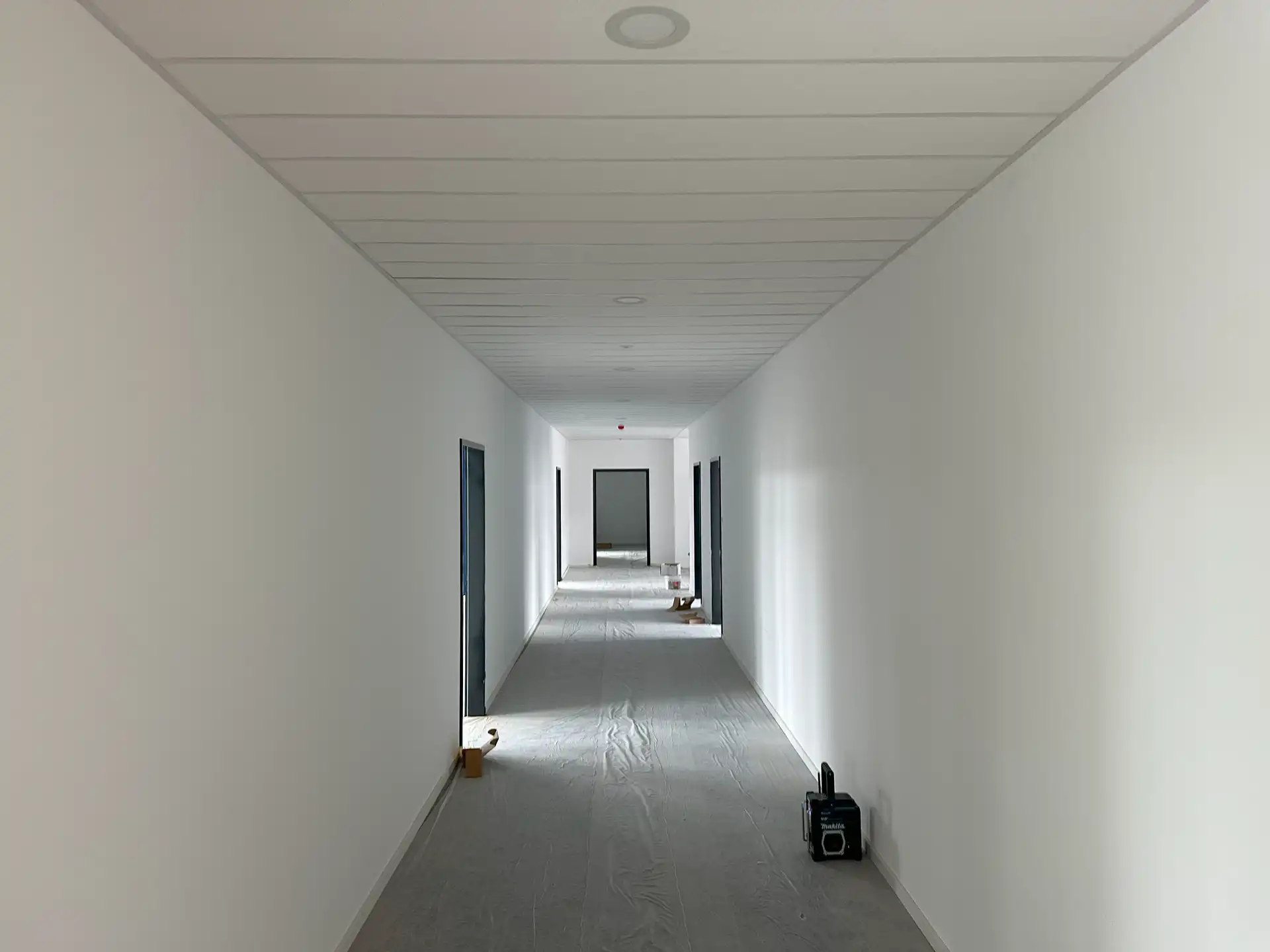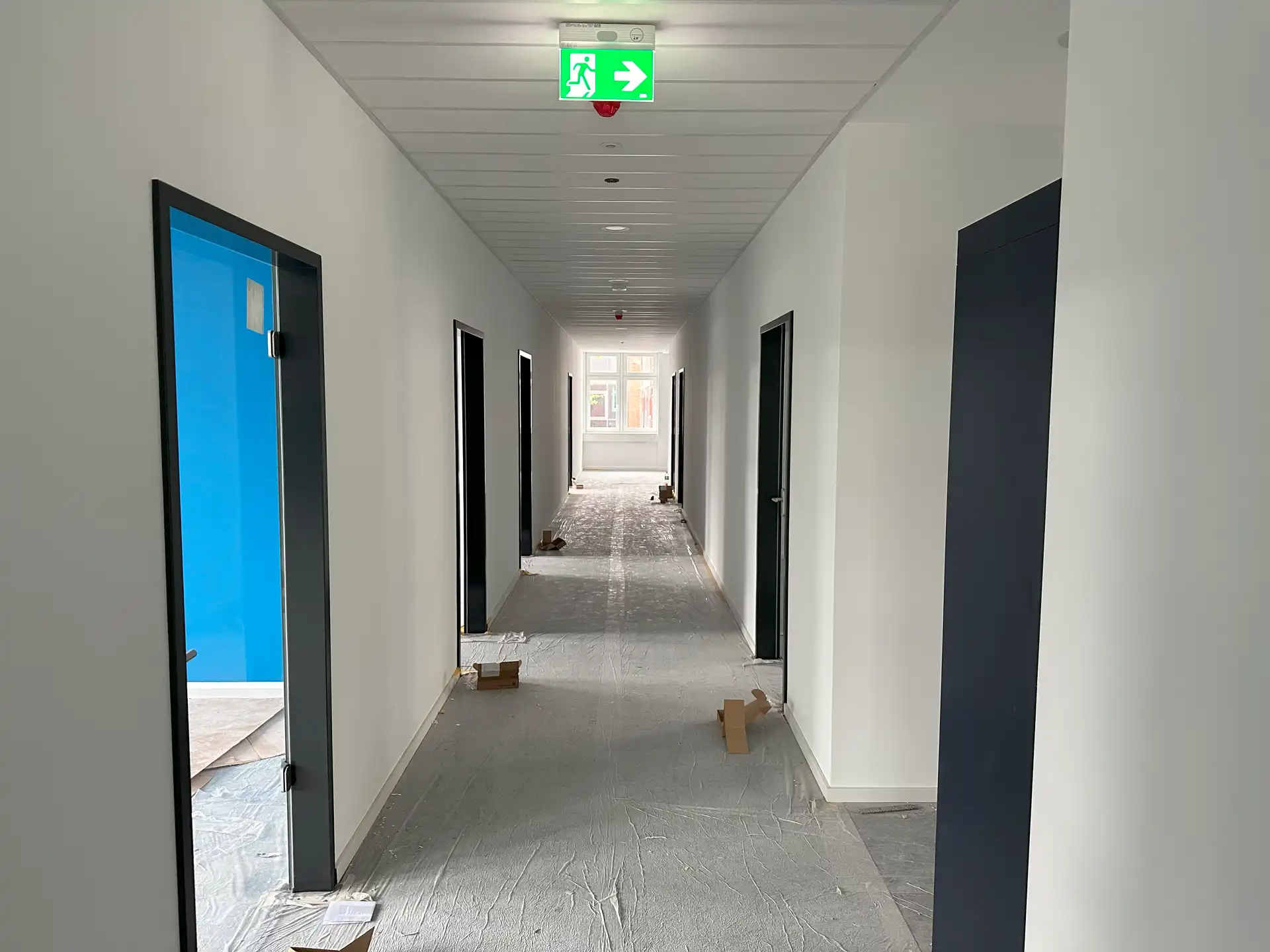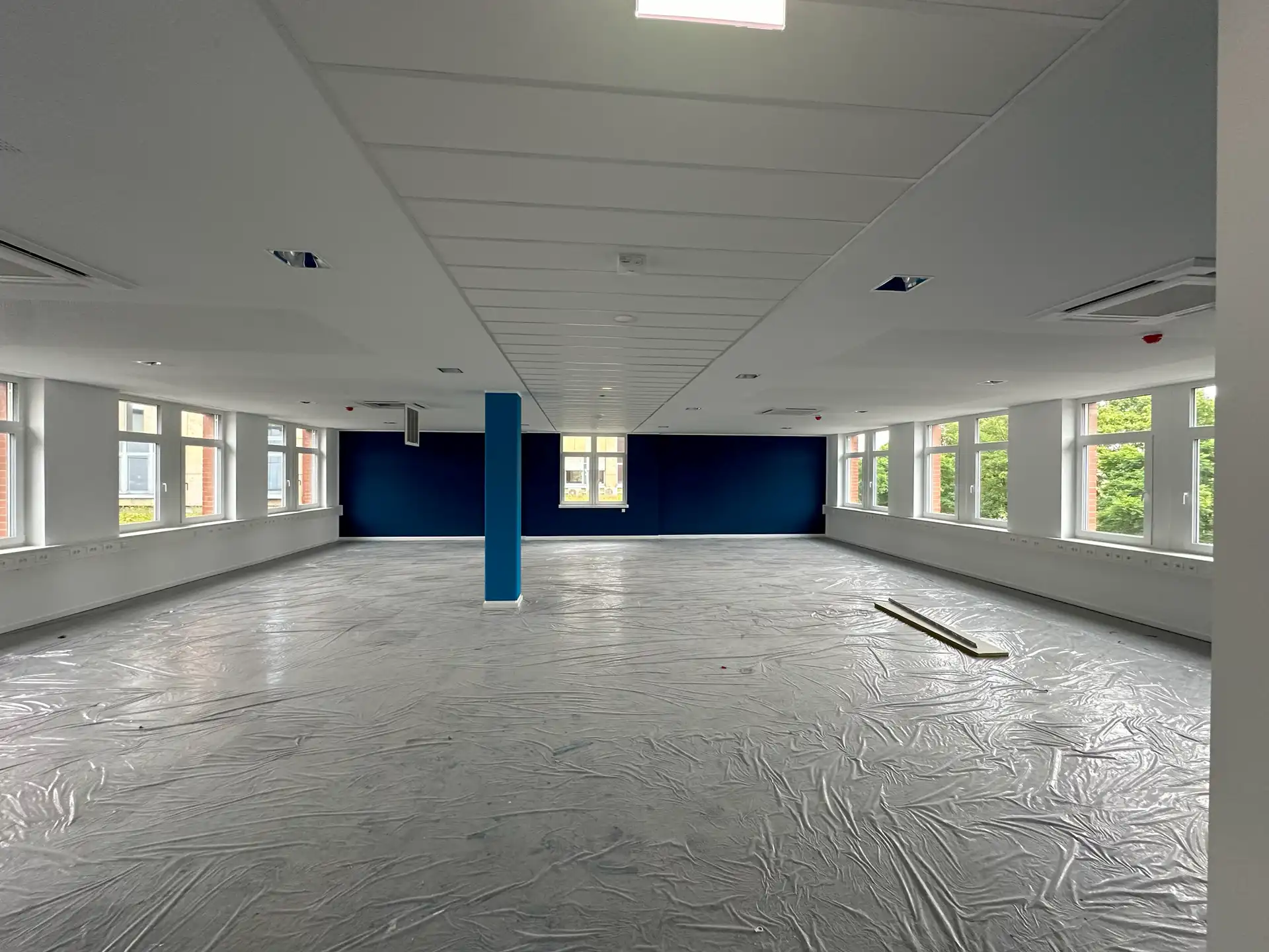 Trockenbau, Akustikdecken und moderne Beleuchtungssysteme wurden eingesetzt, um ideale Arbeitsbedingungen zu schaffen. Die offenen Raumkonzepte fördern die Kommunikation und Kreativität der Mitarbeitenden.