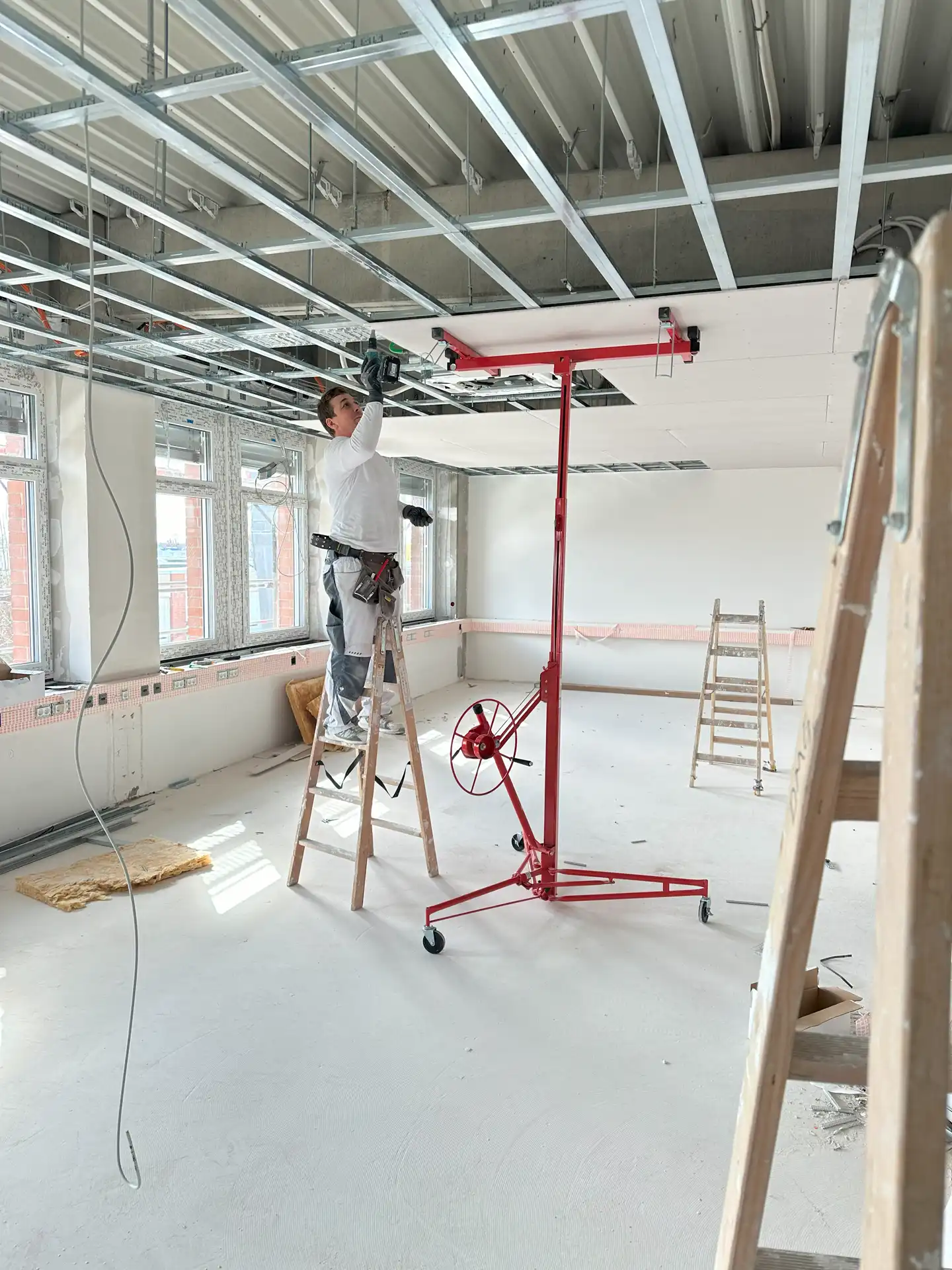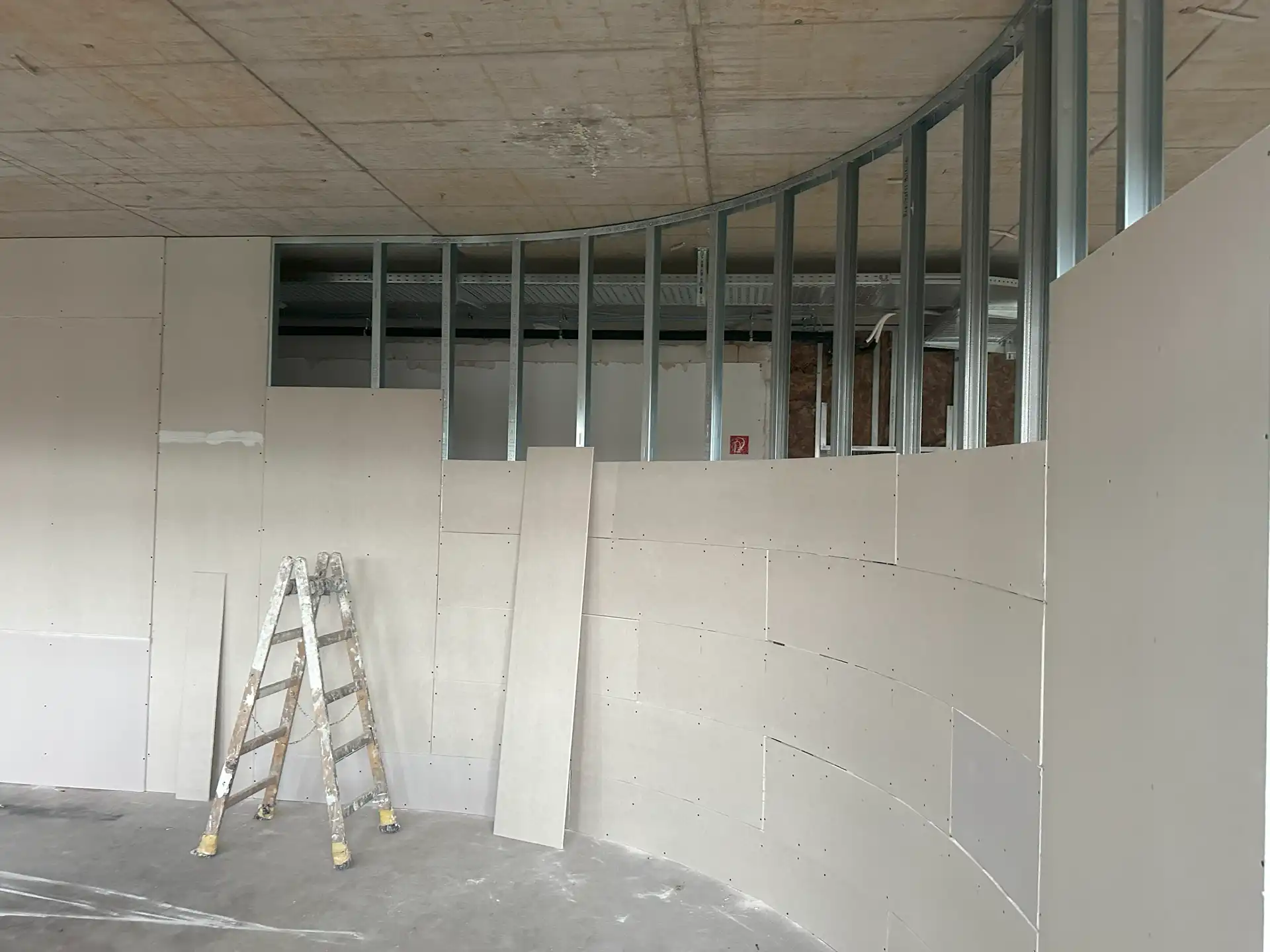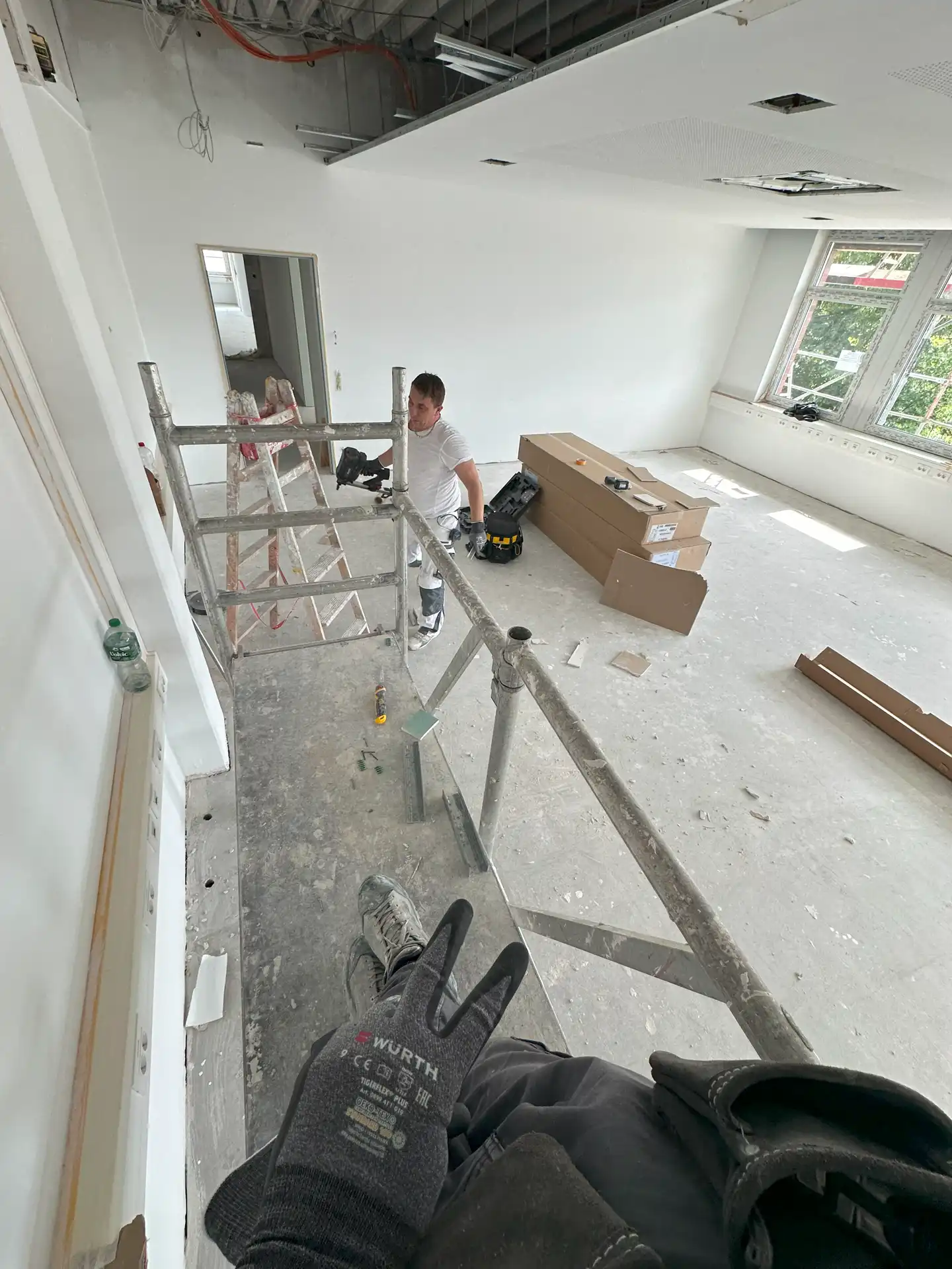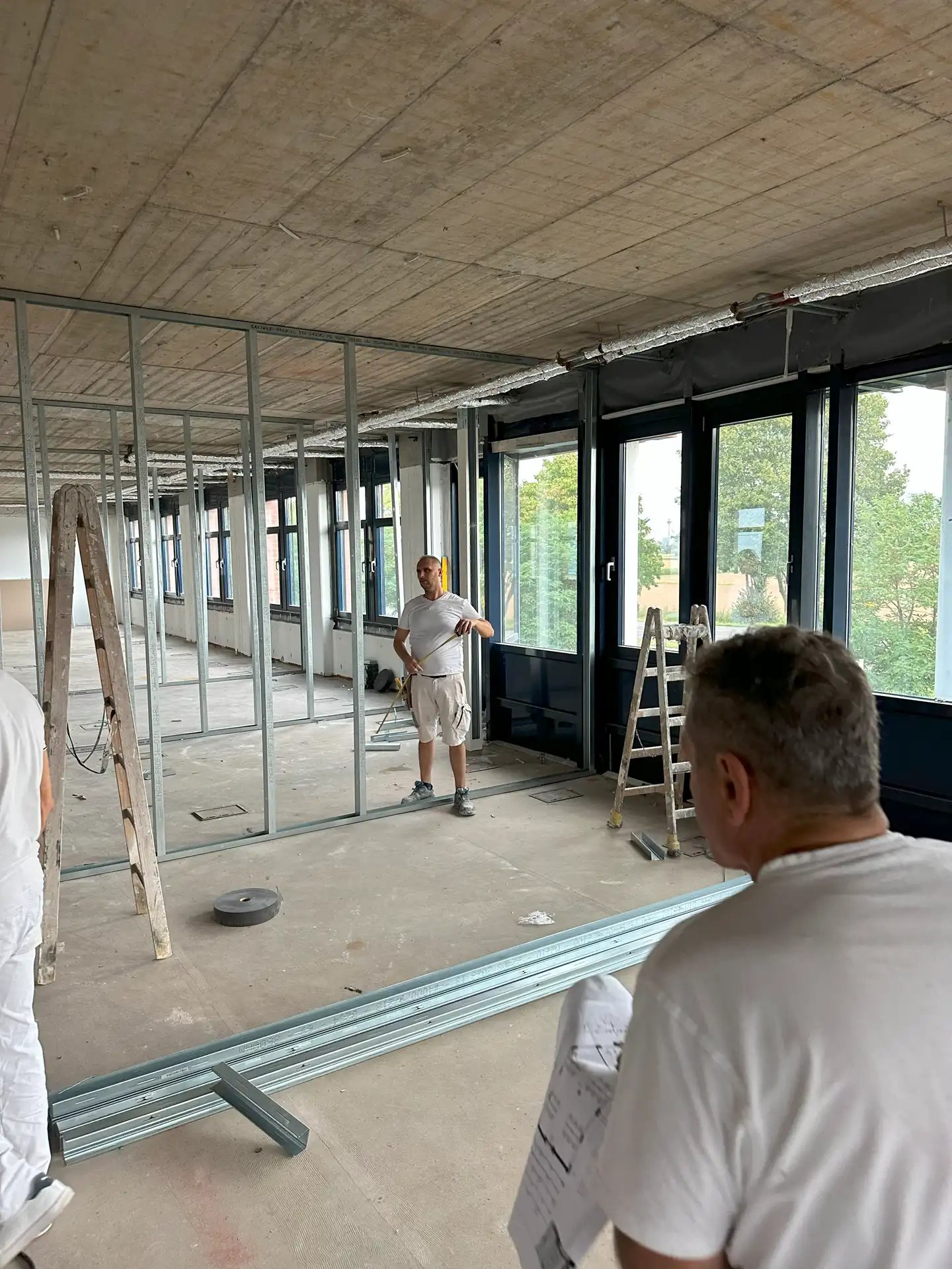 Trockenbau, Akustikdecken und moderne Beleuchtungssysteme wurden eingesetzt, um ideale Arbeitsbedingungen zu schaffen. Die offenen Raumkonzepte fördern die Kommunikation und Kreativität der Mitarbeitenden.