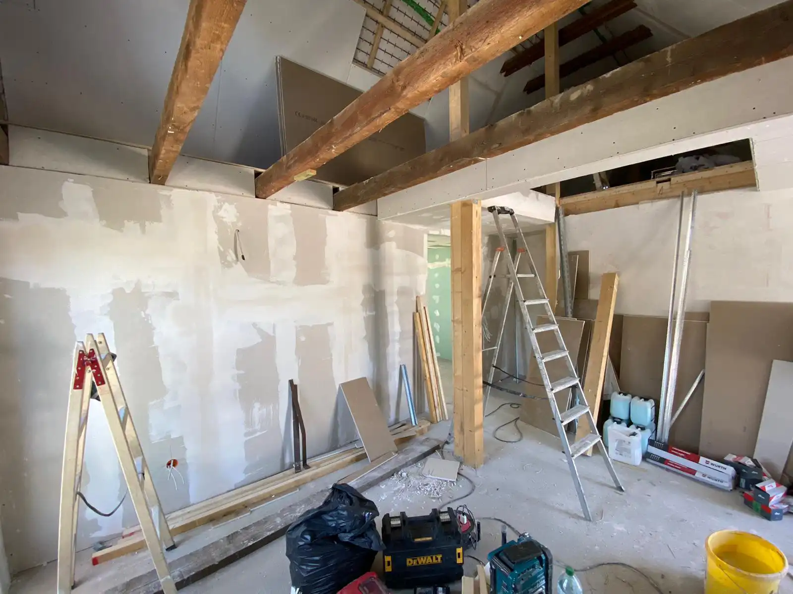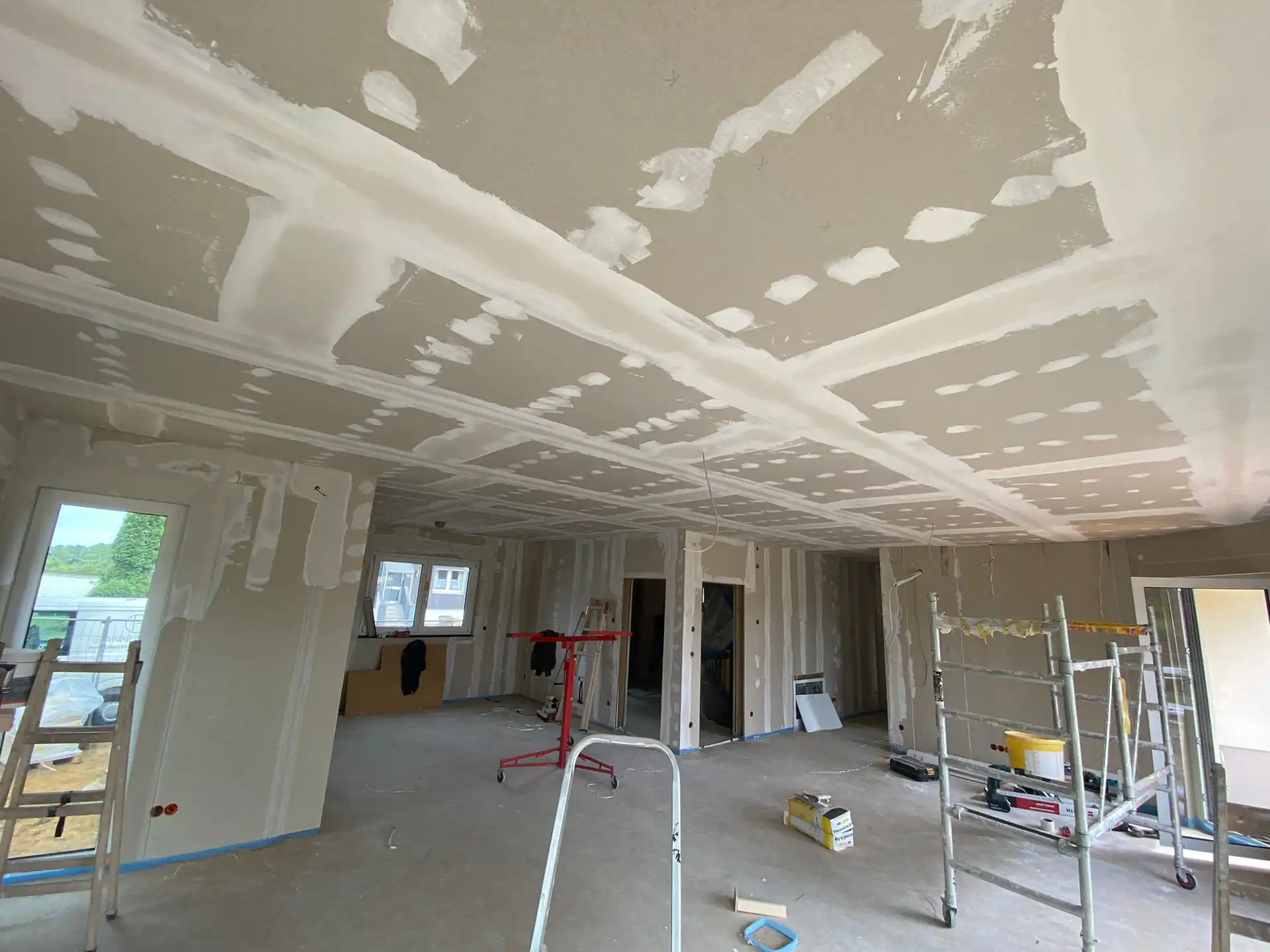 Durch Trockenbauwände entstanden großzügige, offene Wohnbereiche. Die Sanierung umfasste zusätzlich neue Bodenbeläge und eine optimierte Raumaufteilung für mehr Lebensqualität und Wohlfühlatmosphäre.