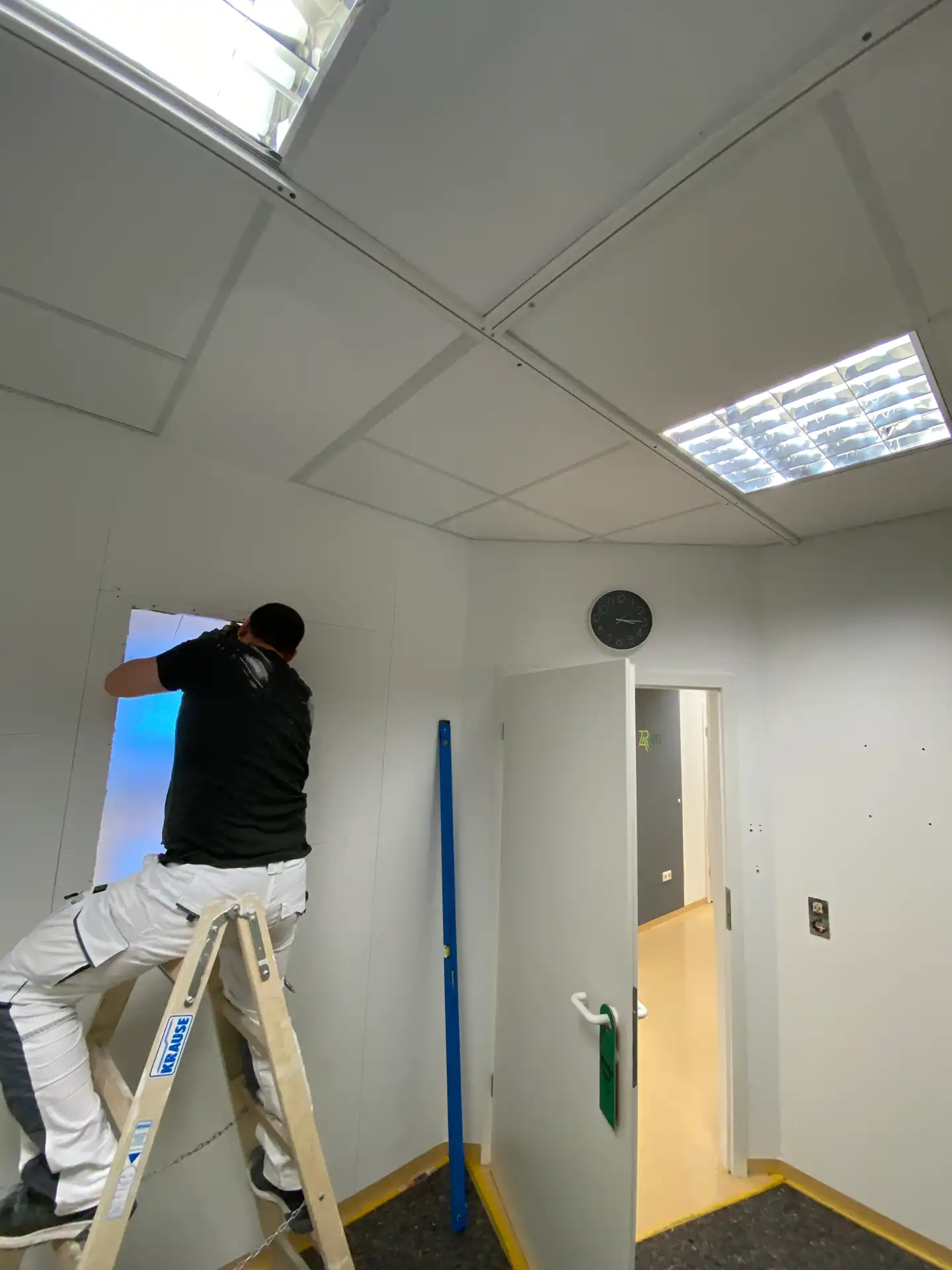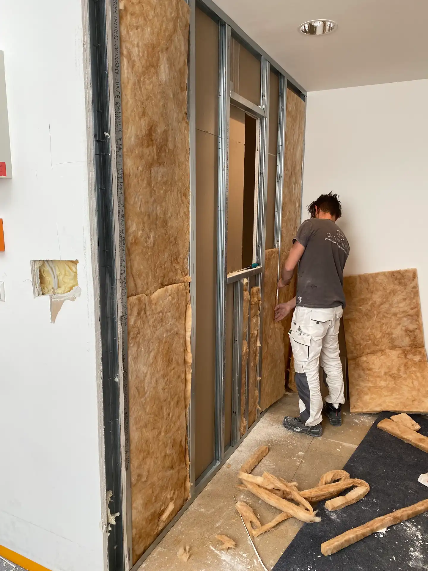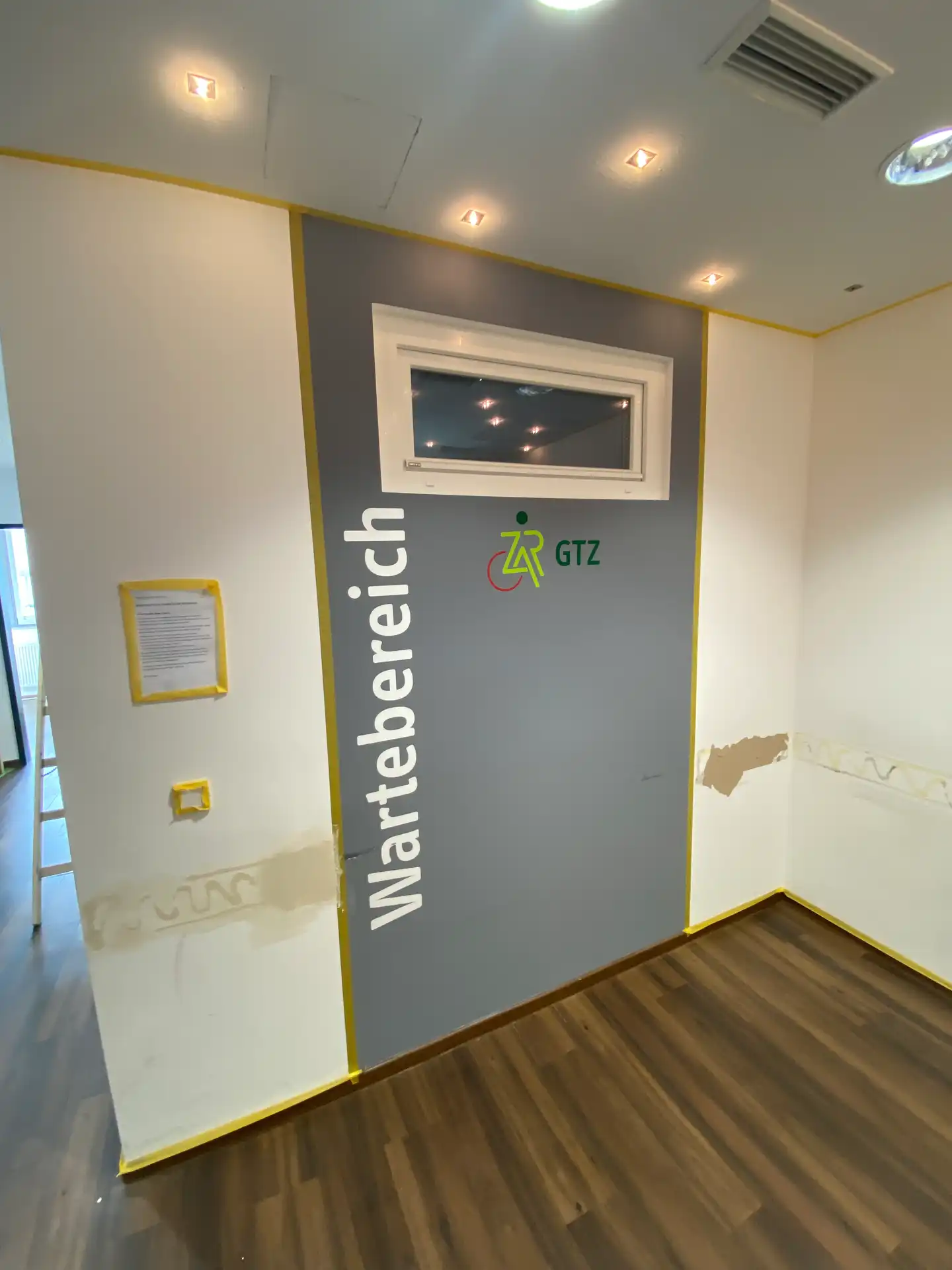 Der Einsatz von Trockenbauwänden ermöglichte neue Raumkonzepte, während moderne Malerarbeiten für ein helles und freundliches Erscheinungsbild sorgen. Die Praxis erfüllt nun alle aktuellen Hygiene- und Sicherheitsstandards.